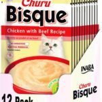 INABA Churu Bisque for Cats, Creamy Lickable Purée Side Dish with Vitamin E, 1.4 Ounces per Pouch, 12 Pouches, Chicken with Beef Recipe