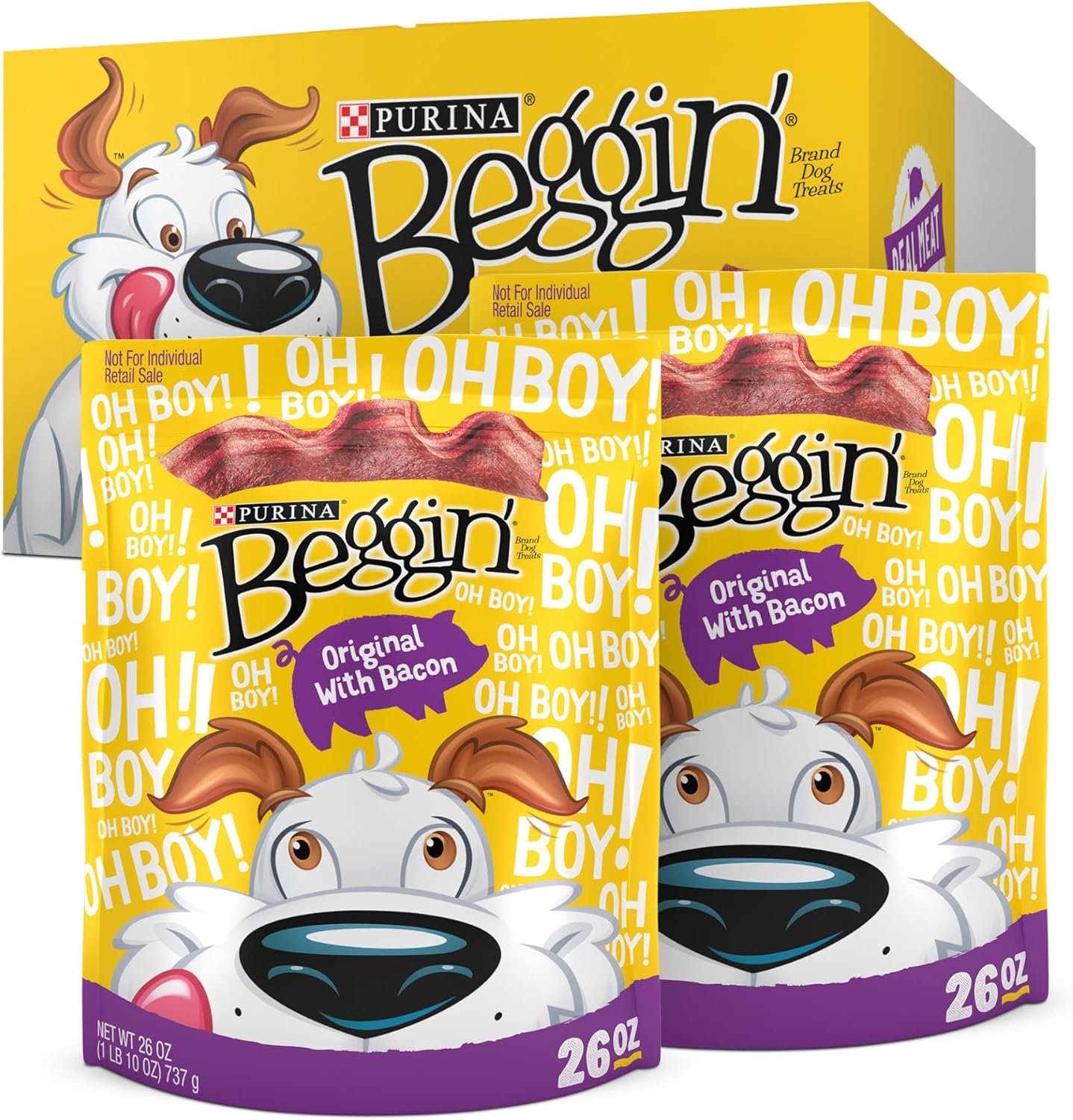 Purina Beggin’ Strips Dog Treats, Original With Bacon Flavor – (Pack of 2) 26 oz. Pouches