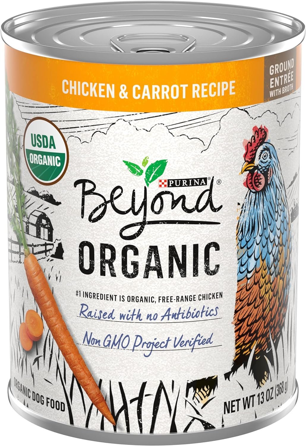 Purina Beyond Organic Wet Dog Food, Organic Chicken & Carrot Adult Recipe Ground Entrée with Broth – (Pack of 12) 13 oz. Cans