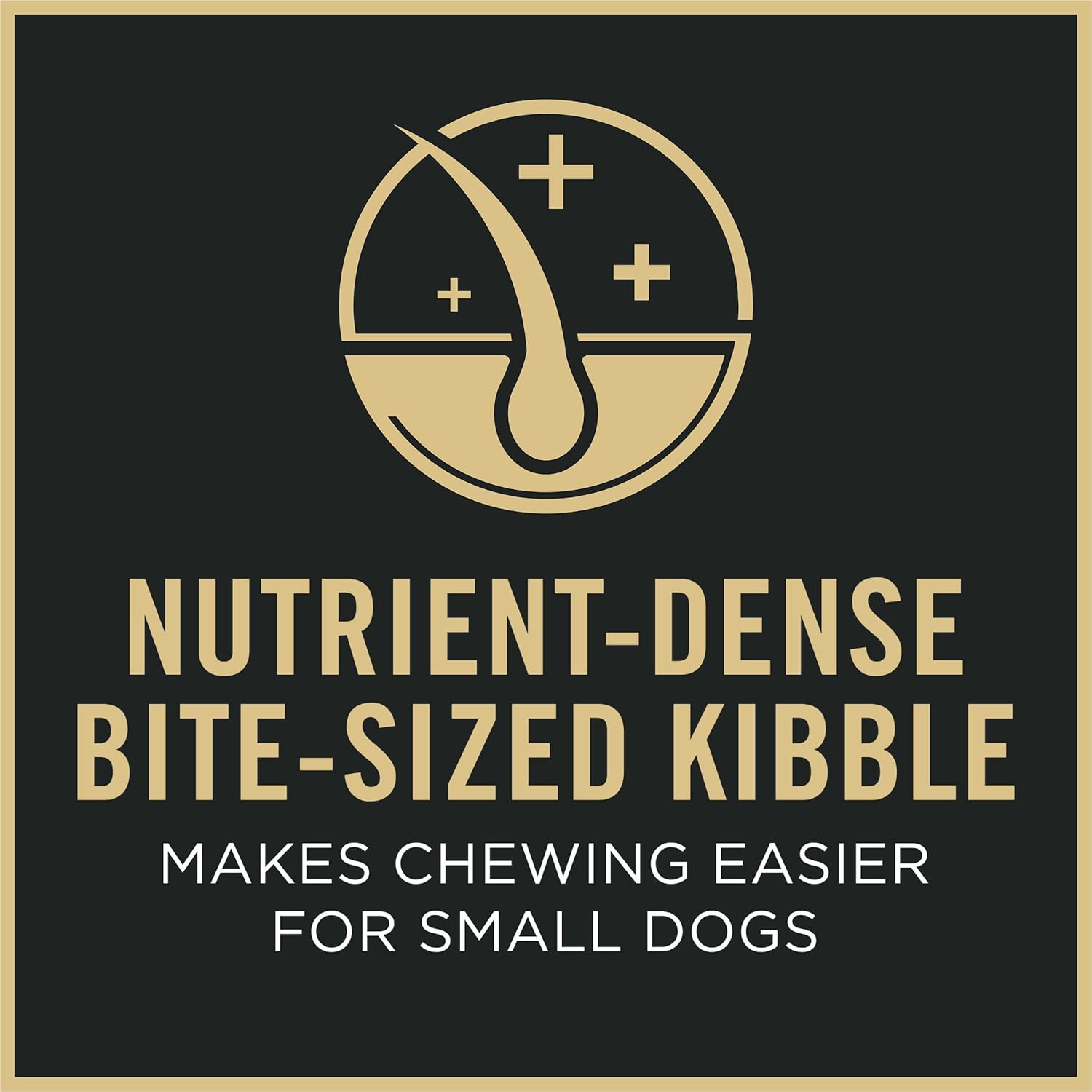 Dog kibble in nutrient-dense, bite-sized pieces to make chewing easier for small dogs