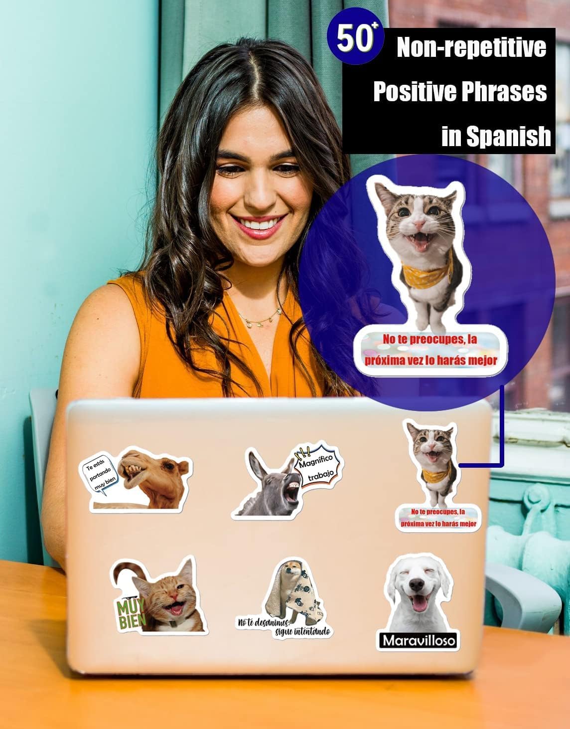 Spanish Meme Stickers with Pet Phrases – Learn Spanish with funny animal stickers.