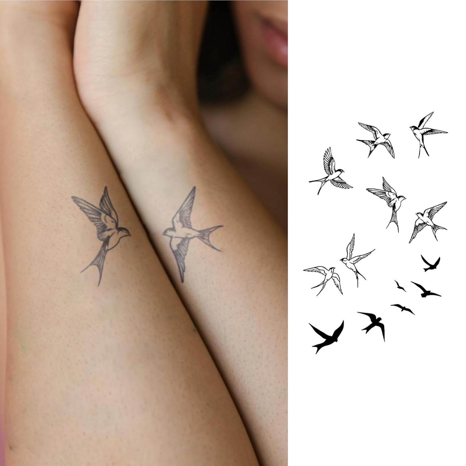 Swallow & Bird Temporary Tattoo Stickers – Realistic Flying Sparrow Fake Tattoos for Arm, Back & Neck Semi-Permanent Waterproof Tattoos for Women