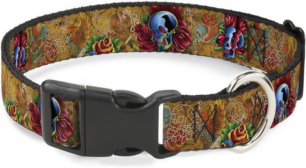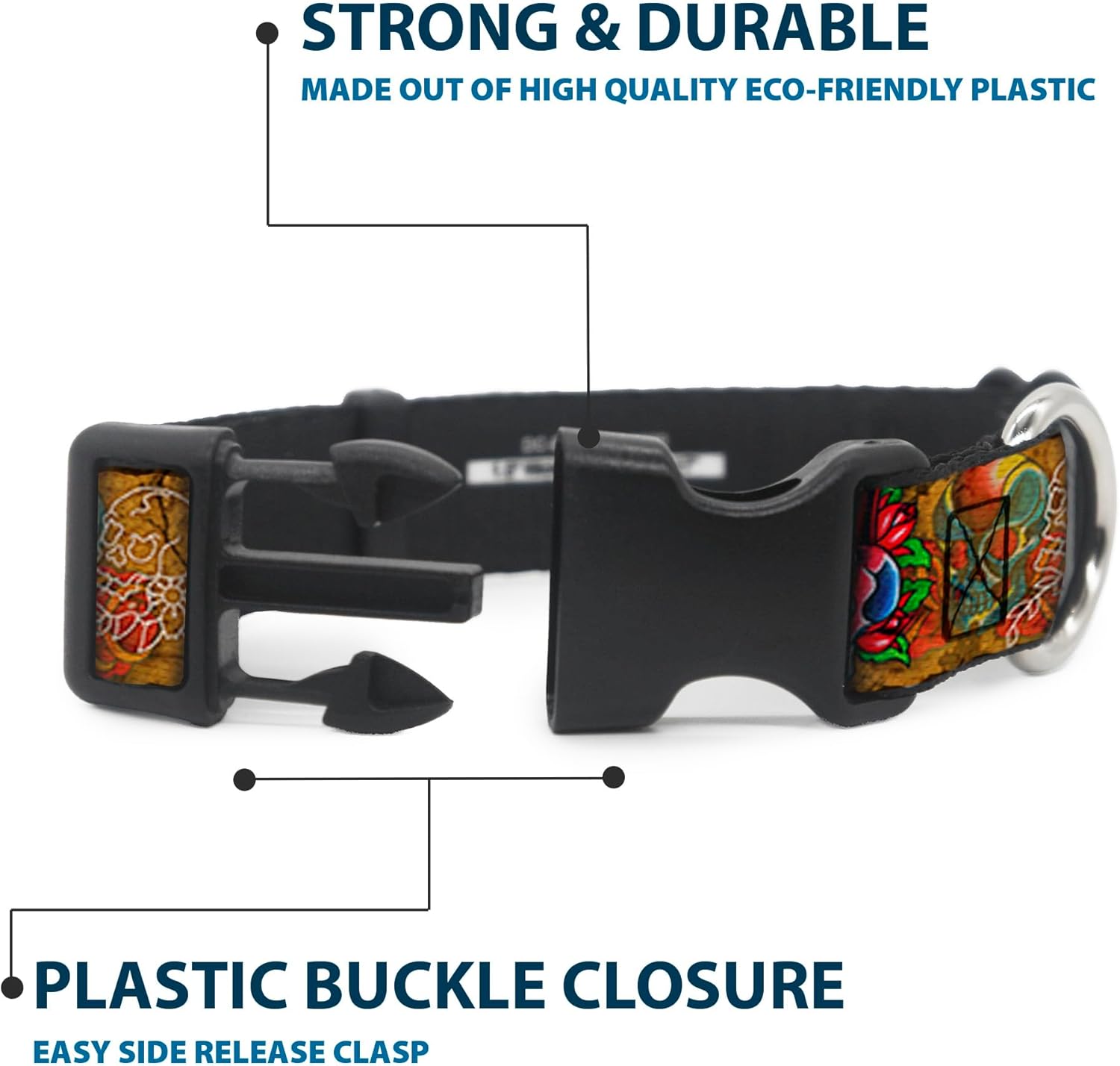 Vibrant and bold, this beautiful, polyester dog collar is made to show off your dog’s unique style through all the seasons. With an overengineered plastic buckle and strong D-ring, this durable collar can hold up to whatever your dog can dish out. This product is officially licensed by Tattoo Johnny.