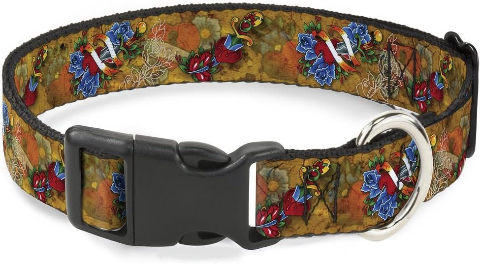Vibrant and bold, this beautiful, polyester dog collar is made to show off your dog’s unique style through all the seasons. With an overengineered plastic buckle and strong D-ring, this durable collar can hold up to whatever your dog can dish out. This product is officially licensed by Tattoo Johnny.