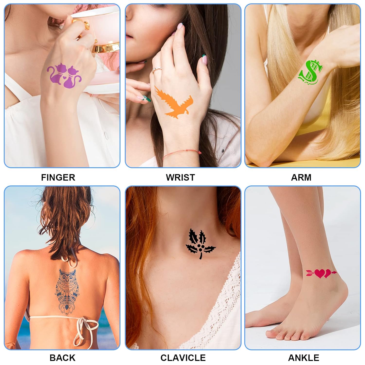 You can stick the tattoo stencils on fingers, wrists, arms, necks, faces, sleeves, backs, feet, etc. Experience the charm of tattoo easily.