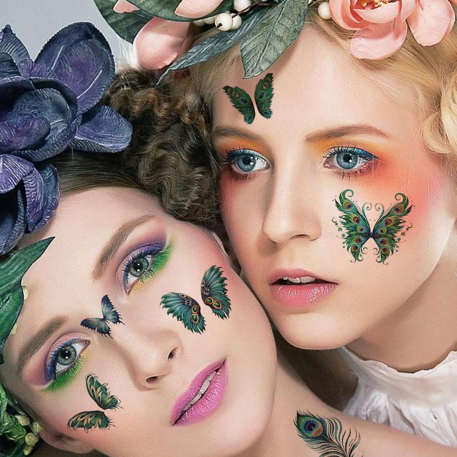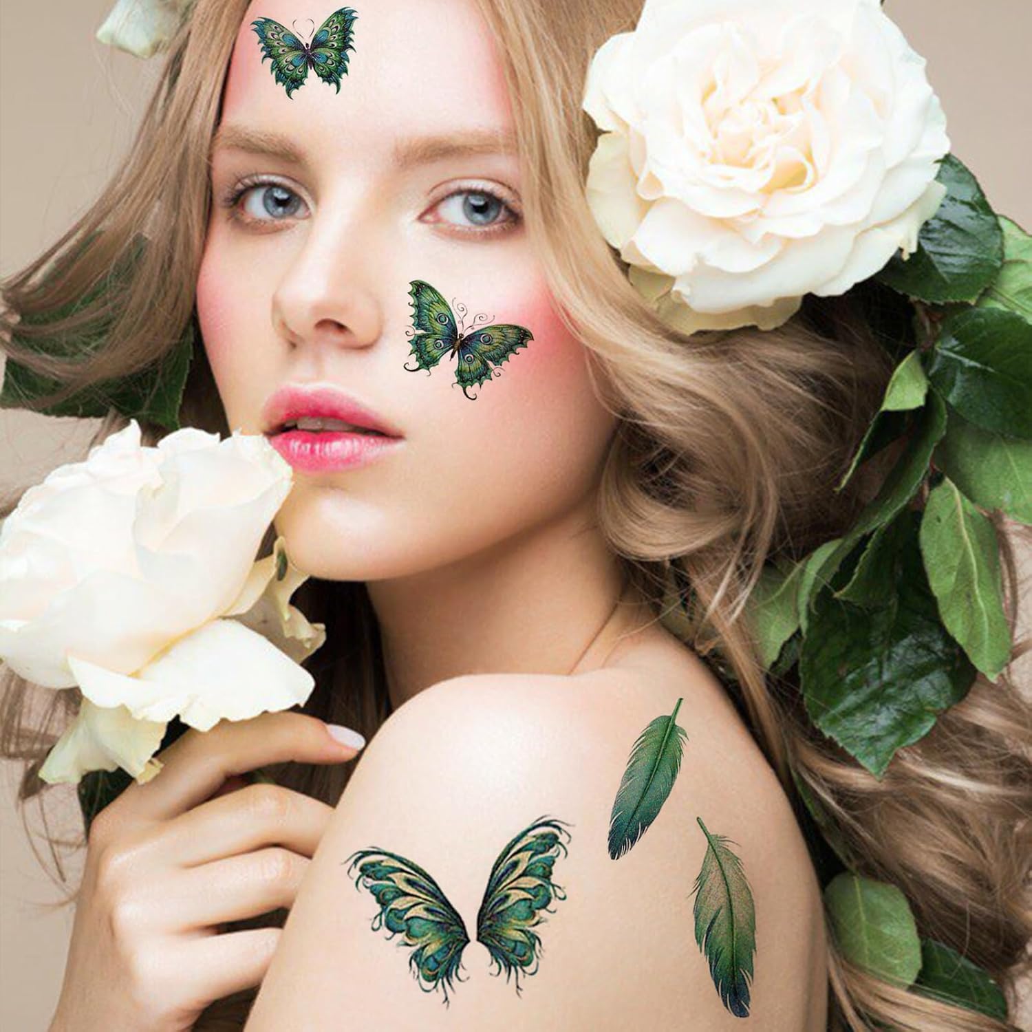 Packaging: You will receive 10 temporary tattoo stickers of green peacock butterflies in different patterns, which you can put on your face, eyes, neck, or anywhere else on your body to show your personality