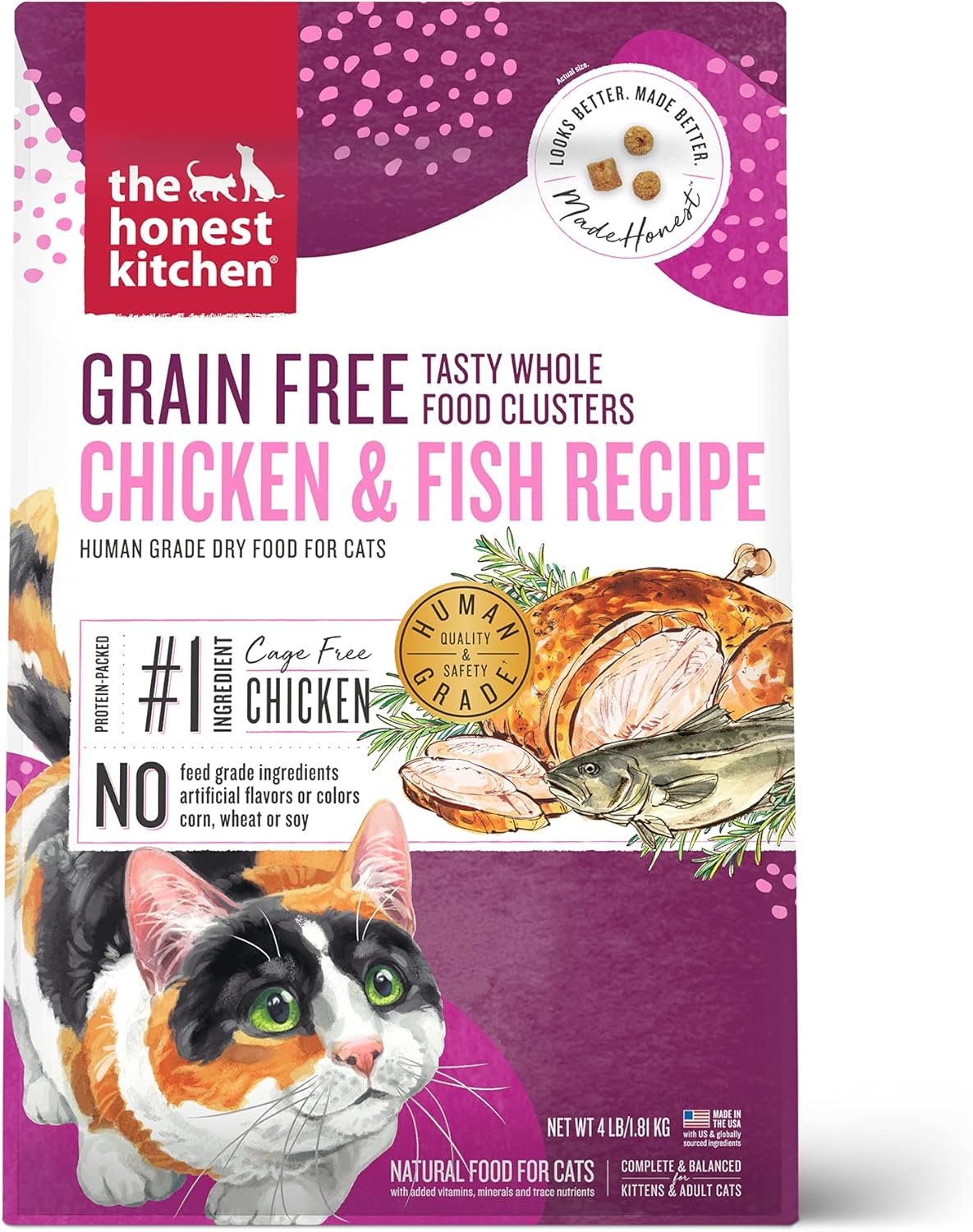 The Honest Kitchen Whole Food Clusters Grain Free Chicken & Fish Dry Cat Food, 4 lb Bag