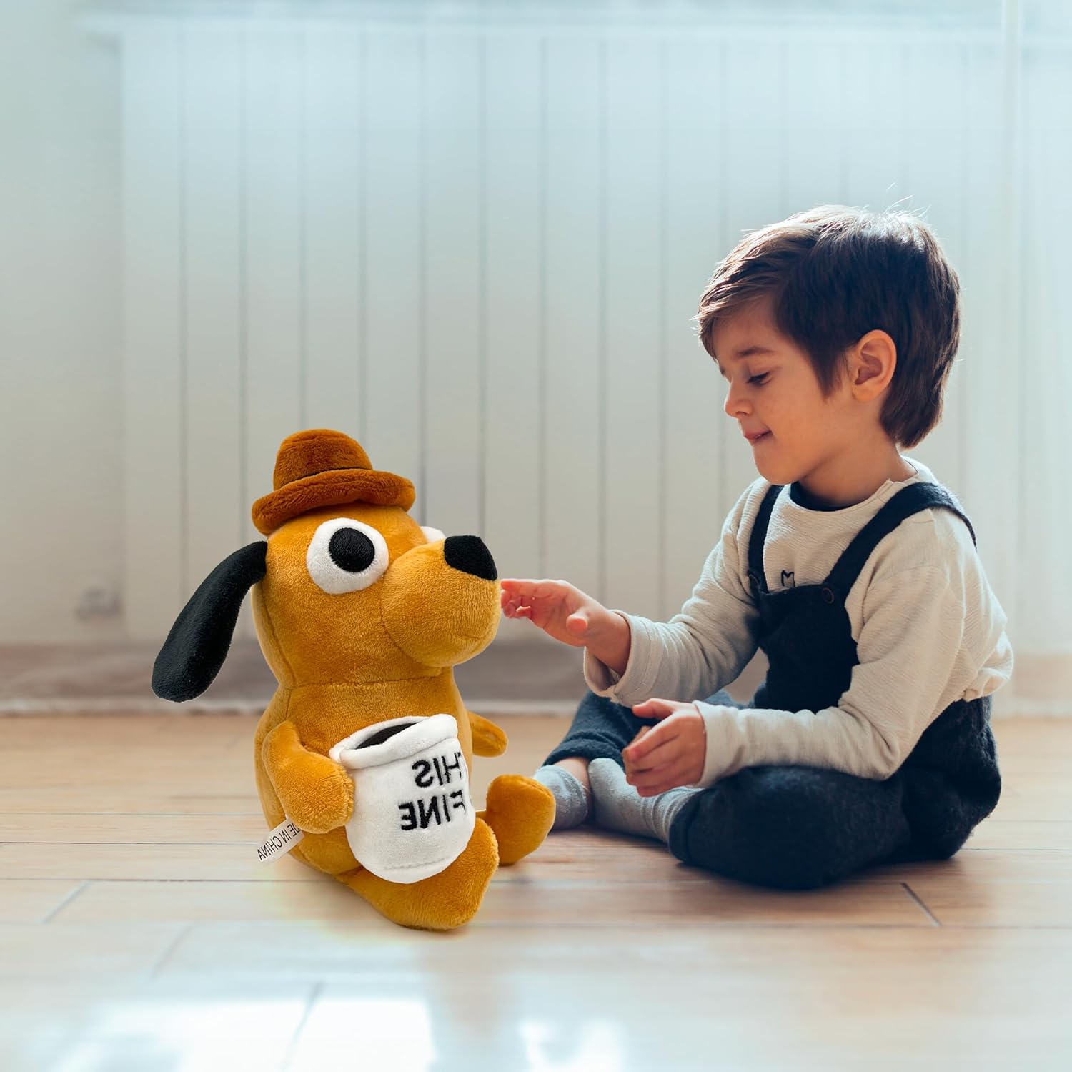 Hilarious Meme Plushie: This adorable plush toy is modeled after the popular ‘This is Fine’ meme featuring a dog calmly sipping coffee while surrounded by flames.