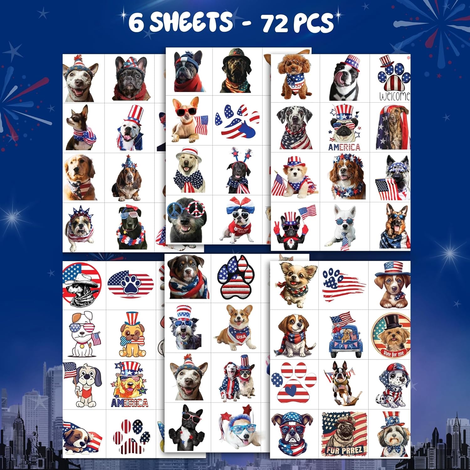 Package includes: 6Sheets/72 PCS Temporary Tattoos.