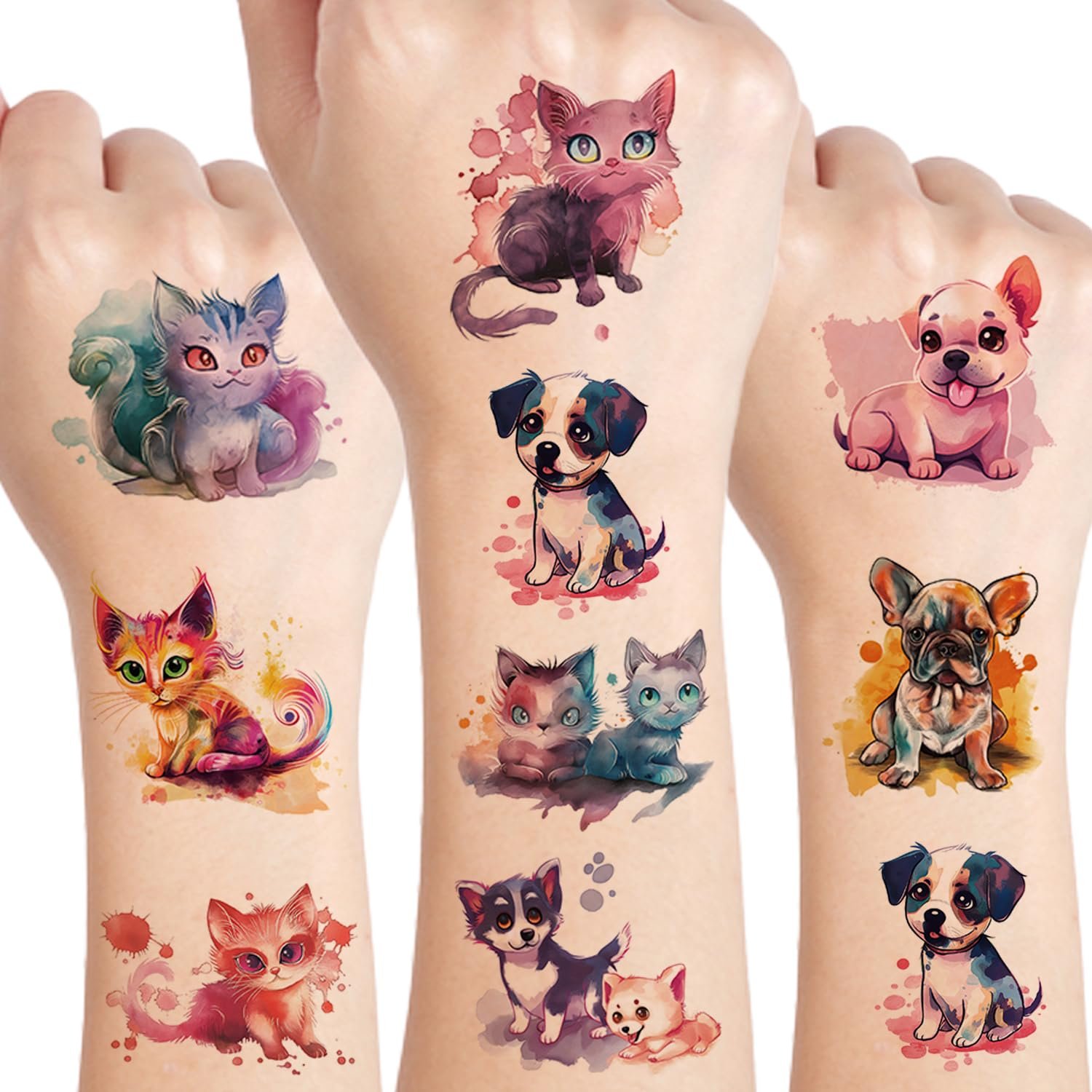 Watercolor Cats and Dogs Temporary Tattoo for Kids
