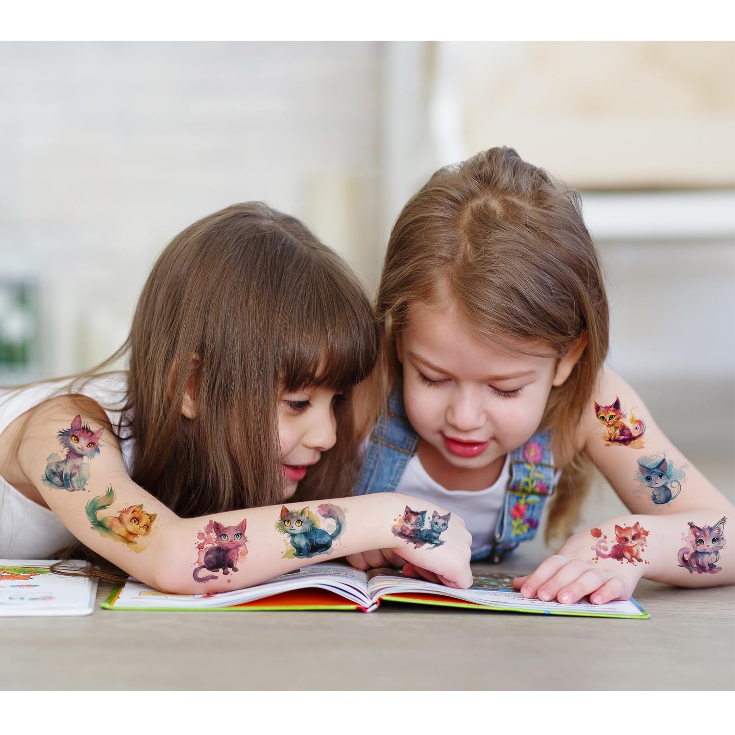 【 UNIQUELY DESIGNED WATERCOLOR TATTOOS 】:You will get 10 sheets uniquely designed watercolor cats and dogs temporary tattoos for kids, measuring 4.7 inches long and 2.7 inches wide.Put your child in a great mood with these watercolor cats and dogs tattoos for kids! Perfect for playdates, birthday parties, and family gatherings.