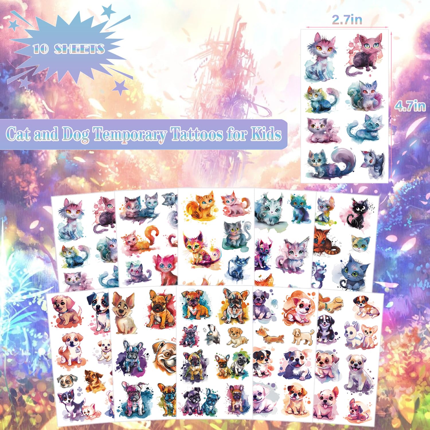 【CATS AND DOGS TEMPORARY TATTOO THEME】:Let your kids start a party experience like no other with these watercolor cats and dogs tattoos Whether they’re dressing up for a themed party or simply adding a touch of fun to their day-to-day activities.These cats and dogs temporary tattoos are a great way to spark joy in their hearts.