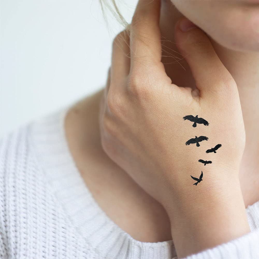 SIZE: 6 x 7.87 inches (15 x 20 cm) for each tattoo sheet. Design includes: Ravens, Crows, Feathers, Skull, Moon
