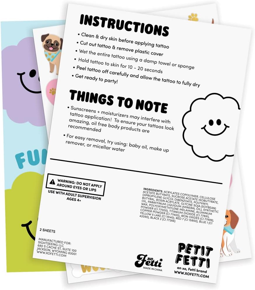 Pawty Time: our temporary tattoos have been put through rigorous party testing and are 100% guaranteed to last all day – no matter what fun comes your way!