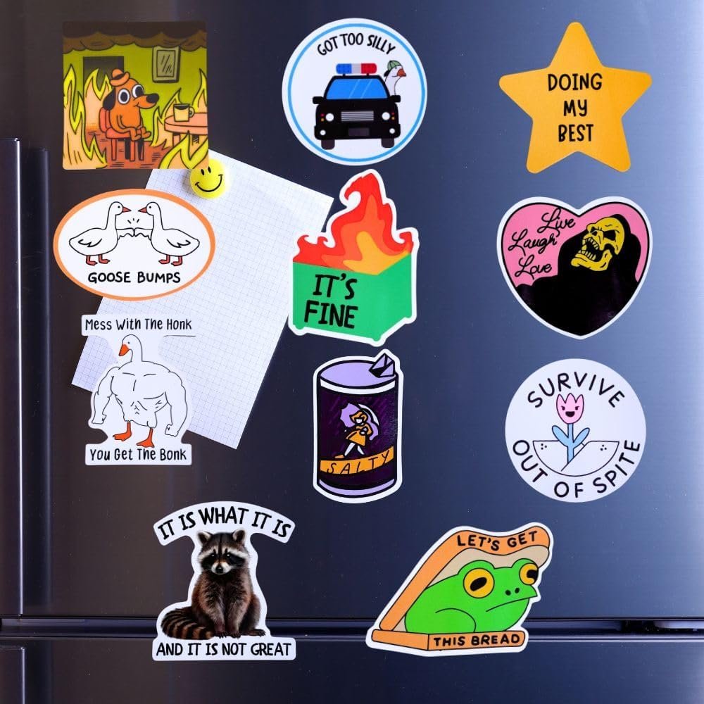 Durable Construction: Made from high-quality materials, our magnets are built to last. The strong magnetic backing ensures that your memes stay securely in place, even on busy fridge doors.